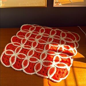 Beautiful handmade crochet pillow sham in orange and white. Perfect for cozy evenings.