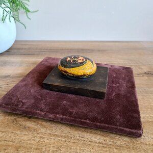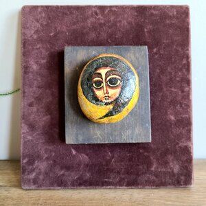 8.5''x7 3/4''.Velvet and rock shows some wear. One of a kind art.