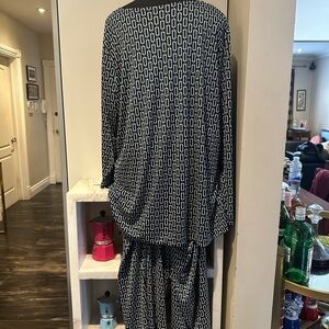 Size 16 handmade pants suit. Great for travel. Great for the office put on a pair of heels and dress it up. Put on a pair of runners for casual, pale blue black-and-white color.