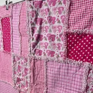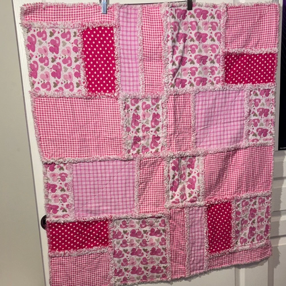 Handmade pink Patchwork Rag Quilt