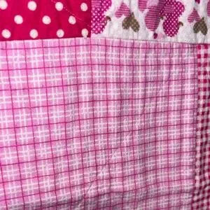 Cozy and charming pink patchwork quilt perfect for adding a touch of warmth to your bedroom decor. Enjoy the delightful mix of patterns and shades of pink.