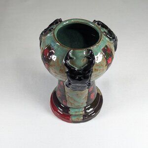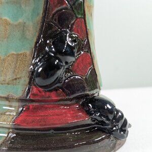 Handmade pottery beetle vase, heavy ceramic bug flower vase