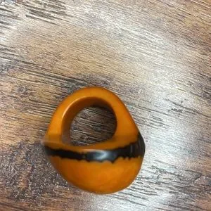 Size 7. Handmade. From Colombia. Made from the seed of a fruit I believe.
