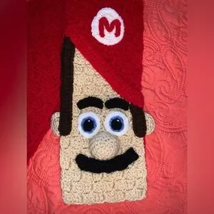 Mario scarf. Homemade. Very well made. Made with soft yarn. Not itchy. Great for that Nintendo lovin’ person.