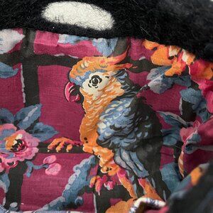 Interior is cotton fabric, with 1 side slip pocket. Multi coloured to match the exterior, with contrasting blue/white pocket.