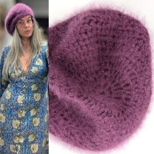 Totally digging this color. Incredibly soft light weight lilac angora tam. Suitable for a larger head circumference of 23"