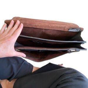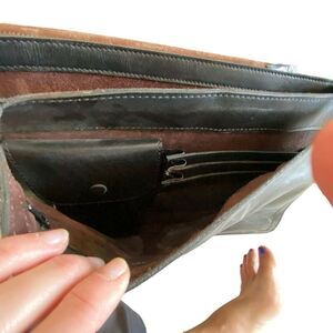 This was handmade in Mexico over a decade ago and has never been used. Lots of compartments. Adjustable strap. Very good quality, durable leather. Some marks on the leather but they should disappear with some oil.