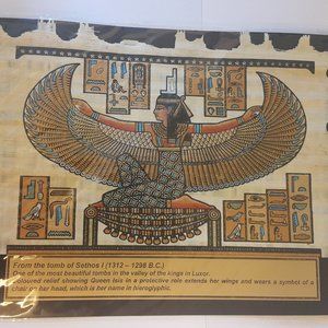 Hand-painted papyrus painted souvenir portrait (The tomb of Sethos-Valley of Kings): 13.5IN x10IN (34x 25CM)/ Can be framed as home decor/ Comes with a certificate of authenticity on the back.