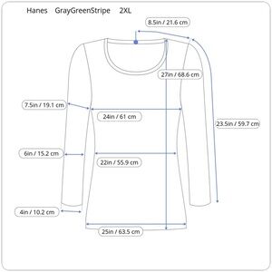 Hanes Green Gray Stripes Crew Neck Knit Long Sleeve Henley Top Plus Size XXL