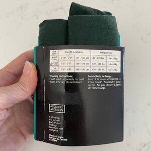 1) Hanes Her Way - Forest Green - 40 Denier, 94% Nylon/6% Lycra - Height 4'10" - 5'4" - Weight 85 - 120 lbs
