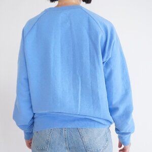 Made from an 80% cotton, 20% polyester blend, the fabric has that plush interior fleece feel that Hanes is known for. The relaxed fit drapes comfortably, perfect for layering over a collared shirt or wearing solo with denim for a casual, off-duty look. The faded periwinkle tone pairs beautifully with neutral outerwear or corduroy, giving that timeless “found at your favorite thrift shop” energy. A soft, durable crew that captures the simple pleasure of everyday wear — classic, a bit cheeky, and endlessly wearable.
