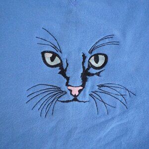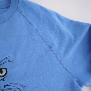Hanes Nano Blue Cat Eye Embroidered Sweatshirt Cozy 90's Cabincore Sweater M