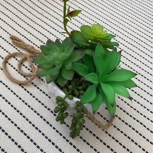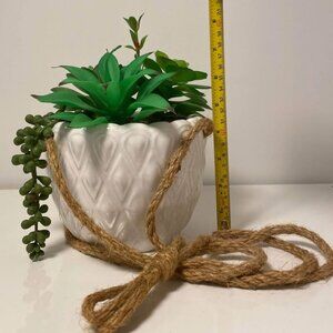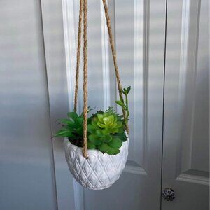 Faux/Artificial Succulents in White Ceramic Twisted Jute Rope Hanging Planter