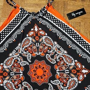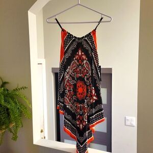 Cute hankerchief halter cami in orange/black with polka dot trim Size Medium New with Tags