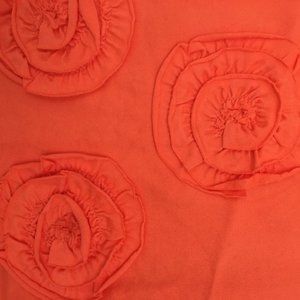Easy dress in soft cotton jersey. Ruffle rosette applique detail. Comfortable for everyday playwear. Bright colors pair perfectly with her favorite shoes, tights and bows for easy outfits.