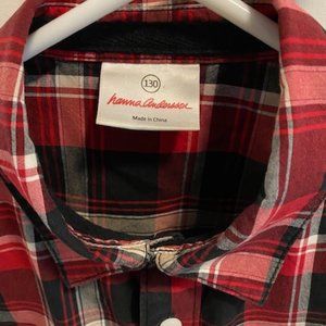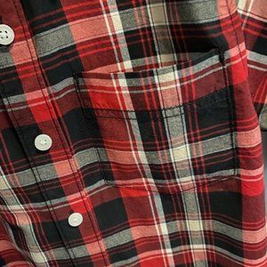 Beautiful, barely used, black, red and white plaid shirt. Boys size 130 (US size 8).