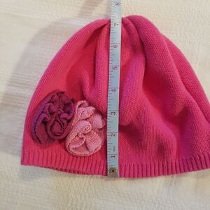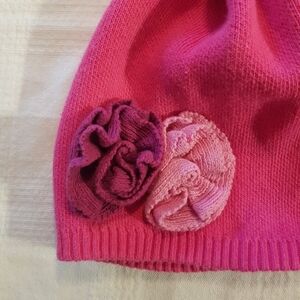 Hanna Andersson pink knit hat sized medium with 2 knit flowers, they will fluff up, nice amount of stretch