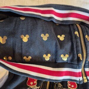 Hanna Andersson girls size 100 or 4 black Mickey lined hoodie, GUC only for fade unisex jacket, black has fade, the white is not bright, stitching on front and back all looks intact, the body front, back and hood are lined with black printed with gold Mickey ears, ribbed collar, bottom and cuffs