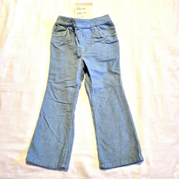 Hanna Andersson girls size 100 or 4 light blue green corduroy pants, elastic back waist, fabric has stretch EUC