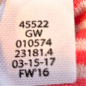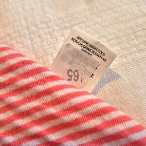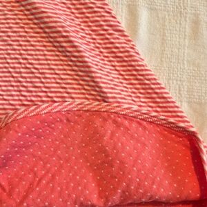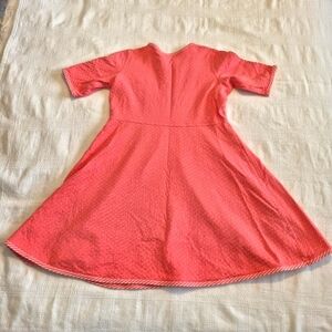 Hanna Andersson girls size 130 or 8 reversible dress light orange & white short sleeves, dots on 1 side stripes on the other, 1 tiny mark near the bottom, untreated VGUC