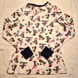 Hanna Andersson women's size Small penguin white pajama top with snaps vguc