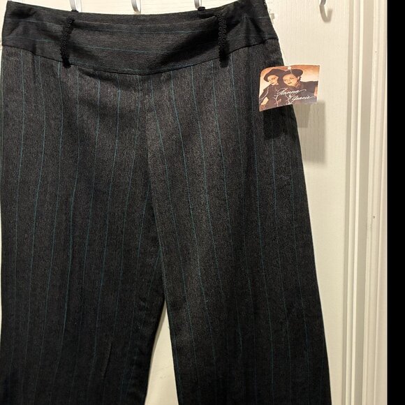 Hanna & Gracie full Size 8, Teal and Black, High Rise, relaxed narrow wide legs (10 inch) Stripe Pants That sits at the natural waist line with side zipper and no pockets. brand new with tag.