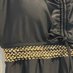 Gold ribbon at waist and shoulder straps