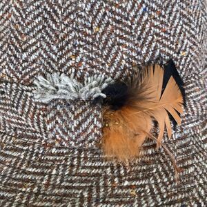 The structured body and brim ensure a secure and comfortable fit, whilst the decorative feathers on the brim complement the colourful flecks in the tweeds.