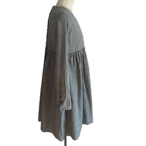 This is a grey striped cotton babydoll dress by Hannes Roether.