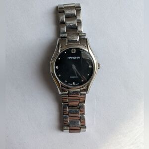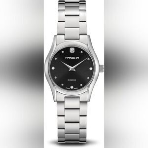 Hanowa Swiss Made Stainless Steel Watch, 3 Diamond splitters, Black , Bracelet