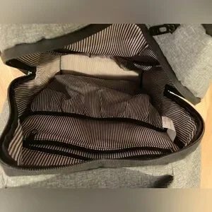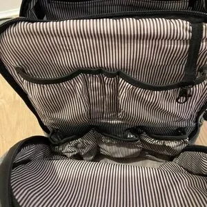 Love this diaper backpack! It’s too large for our needs now. well used but the quality is amazing, it looks basically new. The button on the front pocket flap got caught on something and fell off