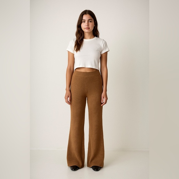 Happily Grey Women’s Brown High Rise Wide Leg Knit Pants Size XL Soft Stretchy