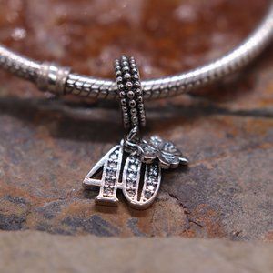 Happy 40th Birthday Dangle Bracelet Charm S925 Sterling Silver Fits Pandora
