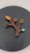 representation of the Tree of Life, with a unique and charming twist. The trunk and branches have a beautiful, textured dark copper or bronze finish, with hints of red and gold. Each leaf is adorned with a different colored, faceted stone or enamel,a vibrant red cabochon, a deep purple/garnet-colored crystal, a light blue aquamarine-colored crystal, and a brown leaf with a black stone.The back of the brooch is marked with the words "HAPPY FINGERS".The brooch measures approximately 3 inches in length, making it a wonderful statement piece for a coat, scarf, or bag. It is in good pre owned vintage condition with a secure pin closure on the back. A perfect piece for collectors of unique and one-of-a-kind vintage jewelry.