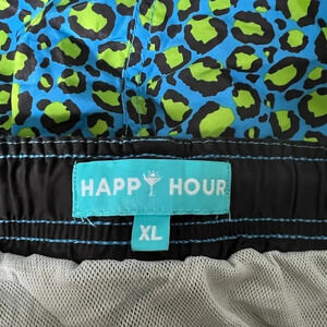 Happy Hour Swim Trunks Shorts Lined | Blue & Green Leopard Print | Size XL