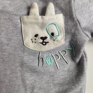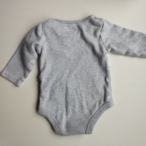 Grey Long sleeved bodysuit with cute dog pocket and "happy"