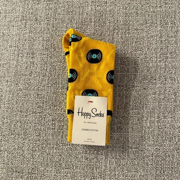 Yellow Vinyl records Happy Socks, perfect for the cold weather or as stocking stuffers