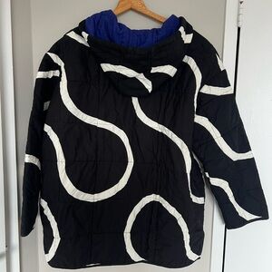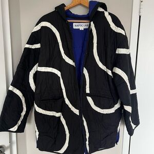 Oversized hooded quilted coat with bright blue inner lining. Worn once, in excellent condition. Definitely a generous oversized fit, labelled for sizes S-XL