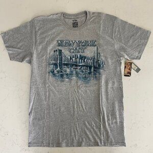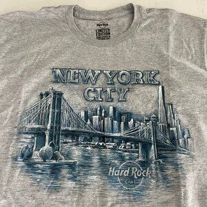 Hard Rock Limited Edition New York Mens Cityscape SS Crew Neck T Shirt w Graphics in Grey + Blue NWT