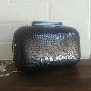 Hard Shell black snakeskin leather look clutch bag silver chain