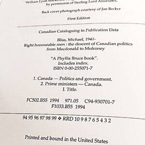 Hardcover Book Right Honourable Men Michael Bliss Harper Collins 1st Edition
