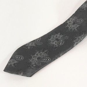Grey paisley pattern in jacquard satin. 3 inches wide. Very good condition.