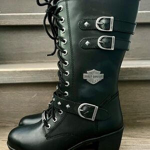 Harley Davidson Aldale women’s boots - black leather tall lace up (zip up too!), are not just water resistant; they’re waterproof. Poron ankle protection is flexible & lightweight. Breathable mesh lining, rubber oil resistant soles have outstanding grip.