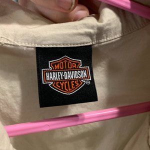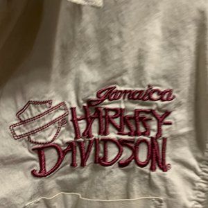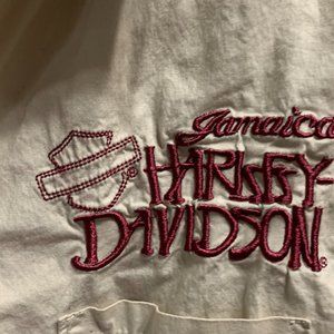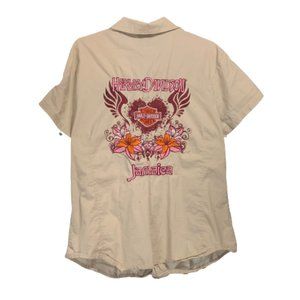 Harley Davidson Jamaica Embroidered Short Sleeve Button Front Shirt Tan Size L