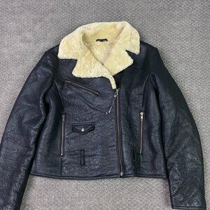 Harley Davidson Leather Jacket Women's Large Black Sherpa Sheep bomber No Belt