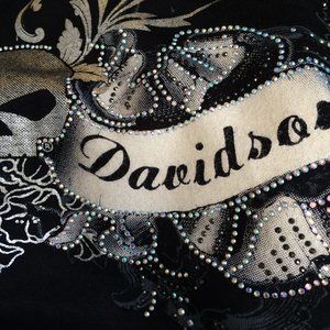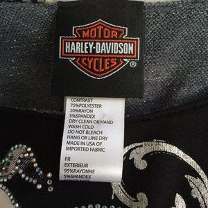 Harley Davidson Long Top Tunic Small Black Gray Silver 3\4 Sleeve Rhinestones