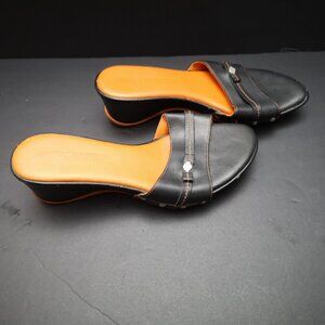 Harley Davidson Motor Cycles Ladies Size 6 Orange & Black Wedge Heel Sandals