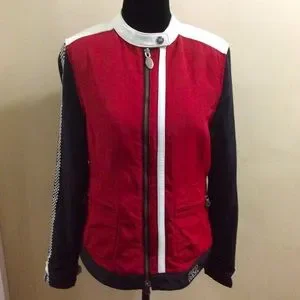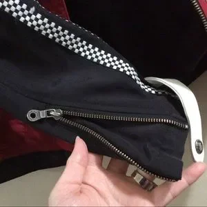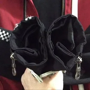 Two front zip pockets and two interior zip pockets. Cuff expansion zips.