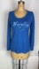 Size large. Medium blue with greyish/blue ombré and beautiful ocean blue gemstones on the front logo. Scoop neck. Long sleeves. Graphic on the front and upper back. Very soft and lightweight tee material.