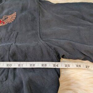 Harley Davidson Short Sleeve 100% Silk Button Down Large Embroidered Graphic L